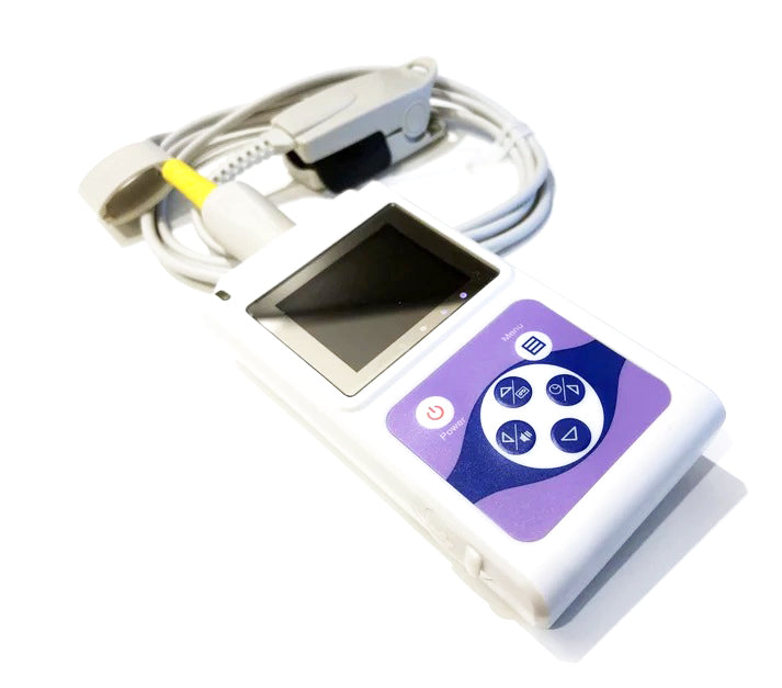 This handheld oximeter performs equally well for single measurements and for longer recordings, such as sleep studies, as the CMS60D is capable of continuous recording for 24 hours. (the neonate probe is specially designed to attach to the foot of the baby, not the finger).